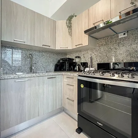 Sí, el apartamento Goistay Elegant Refugio Caribeo 1br Gym Pool Naco está equipado con una cocina completa y ofrece también una cafetera/tetera, una nevera y un horno. - ❓